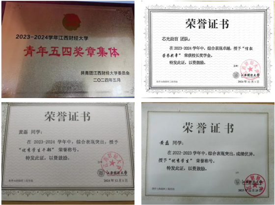转机出现在大三上学期,黄磊加入了谢亮老师的项目组,即使那一届挑战杯竞赛名单中没有自己的名字,黄磊仍然主动请缨,独立承担起一个项目的全部嵌入式裸机代码编写工作。这段不计回报的付出,成为他学术生涯的重要转折点。竞赛结束后,他重拾信心而后成功竞选为芯创客社团社长,并带领团队接连斩获校长奖学金、“中国大学生自强之星科创团体”、五四青年集体等多项荣誉。这些经历不仅使他的专业能力得到锤炼,更为他报考挑战浙江大学硕士研究生积攒了底气。