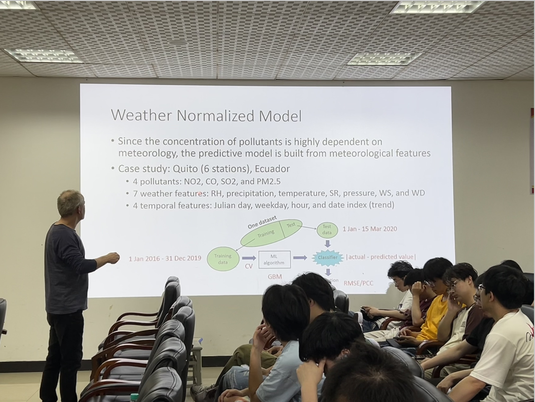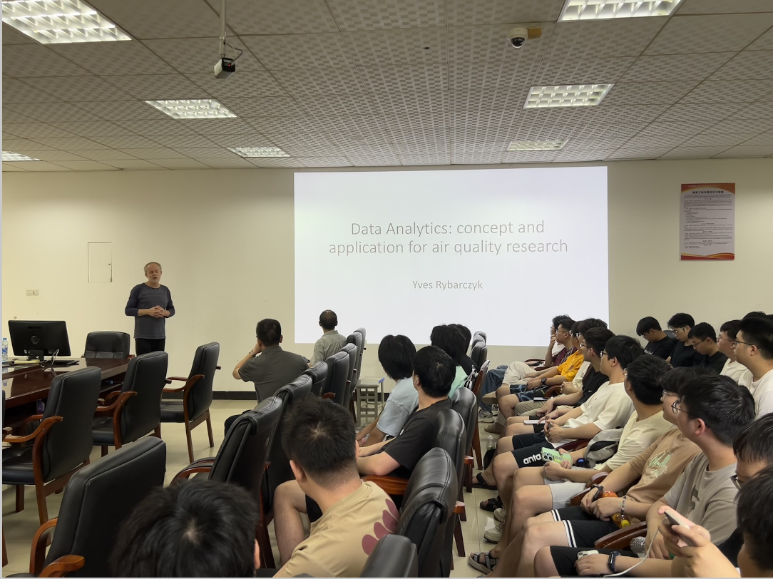 Startingwith practical cases, Professor Yves systematically elaborated on thecrucial role of data science methods in environmental research.Taking the changes in air quality during the COVID-19 pandemic as anexample, he vividly demonstrated how to use data analysis techniquesto accurately distinguish the impacts of policy interventions andnatural factors on air quality. Particularly noteworthy is the"meteorological standardization model" developed by histeam, which can effectively eliminate the interference of weatherfactors on pollutants, thereby more precisely assessing the impact of human activities on the environment and providing strong technical support for environmental research.