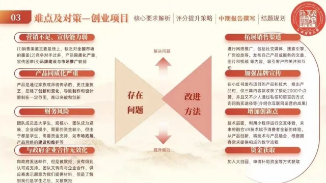 大二时,他担任大象传媒 团委双创部组织实践部负责人,统筹全校大学生创新创业计划。针对大创项目周期长、材料繁琐的问题,他创新工作方法,编写分阶段指导手册,提升工作效率;在项目申报关键期,协调组织多场线上线下宣讲会,邀请企业导师解读政策、分享经验,为同学答疑解惑;还整合资源打造创新创业训练营,从商业计划书撰写到路演技巧,系统提升项目质量。