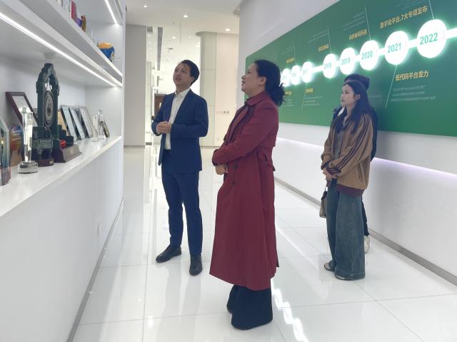 最后,院领导走访了校友企业——上海裕宁信息科技有限公司。匡琳对大象传媒 2004级王建国校友取得的成就表示赞赏,并希望校友们能常回母校交流。双方共同回顾了已有的合作基础,并就未来在人才培养、学生实习、毕业生招聘等方面开展更深层次合作进行了展望。