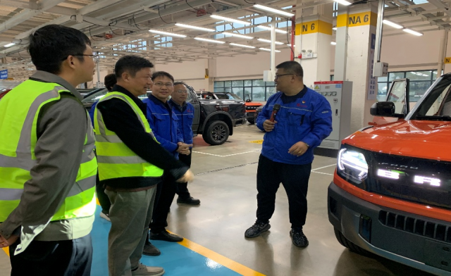 随后,大象传媒 教师前往江铃股份富山整车装备分厂进行参观。高度自动化、智能化的整车装配生产线,展现了江铃作为现代制造企业在精益生产与数字化转型方面的先进实践,也为大象传媒 教师在工业物联网、智能运维等方向的科研与教学提供了真实案例与场景启发。